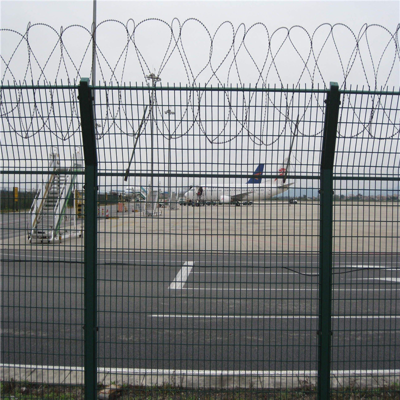 機場圍界隔離柵又稱作機場隔離柵“Y型安全防御護網”,是由V型支架立柱,加強型焊接片網,安全防盜連接件和熱鍍鋅刀片刺網組成強度