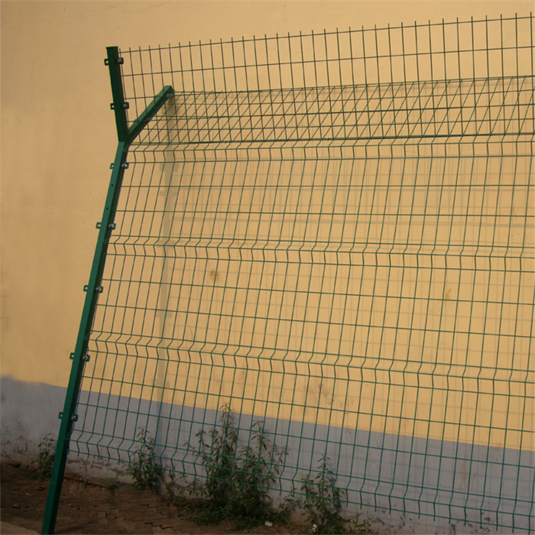 材質:采用直徑4mm優質低碳鋼絲點焊而成。 規格:網孔 (mm) 75x150、長 X 寬(mm) 1800x3000、邊框 (mm) 20x30x1.55、浸塑厚度 (mm) 0.7-0.86、 浸塑后 (mm) 4.87、立柱 (mm) diameter 48x2x2200、預埋基礎(mm) 500x300x300 附件:有防雨帽、連接卡、防盜螺栓、其中連接方式為卡接 編織方法:編制焊接而成。 表面處理:電鍍,熱鍍鋅,噴塑 浸塑。