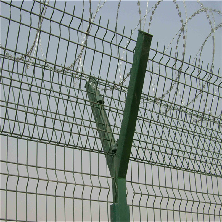 現(xiàn)在人們選擇飛機出行的方式越來越多,當看到這種高大護欄網(wǎng)時不知是如何生產(chǎn)的,這種護欄網(wǎng)是采用大直徑高強度合金鋼絲制作。機場護欄網(wǎng)主要是采用高強度的刀片刺網(wǎng)與普通防護網(wǎng)的結(jié)合,由V型支架立拄,加強型焊接片網(wǎng),安全防盜連接件組成。