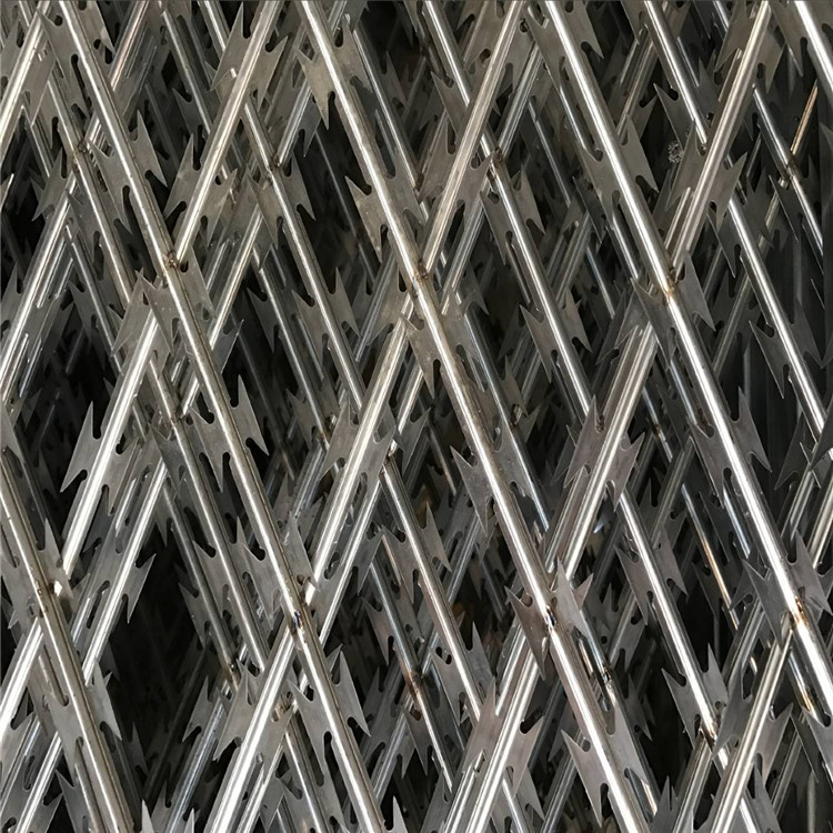 刀片刺繩也稱為刀片刺絲、刀片刺網,是一種新型護欄網產品。它具有嚇阻效果好、美觀、施工便利,經濟實用等優異特點。主要用于園林公寓,機關單位,監獄,哨所,邊防等的圈禁防護。刀片刺網由熱鍍鋅鋼板或不銹鋼薄板沖壓出尖銳的刀片狀,高張力鍍鋅鋼絲或者不銹鋼絲做芯線組合而成的阻絕器材。由于刺網造形獨特不易觸摸,因而能達到極好的防護隔離效果。產品的主要材質有鍍鋅板和不銹鋼板。