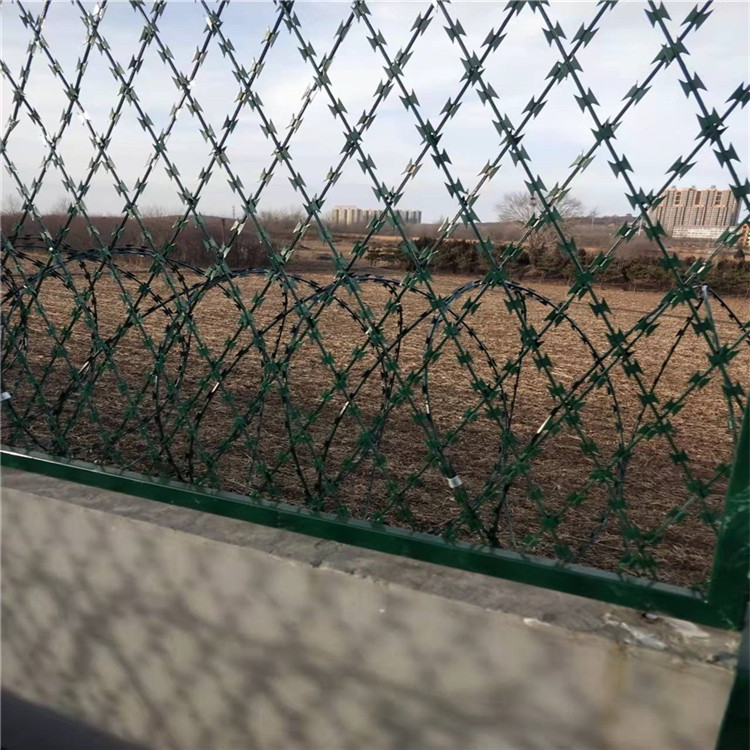 制造及特點:鋼絲為芯絲,將沖壓好的刀片包裹在芯絲上,一次制成。產(chǎn)品具有極強的防護能力和恐嚇能力,安裝方便,壽命長。