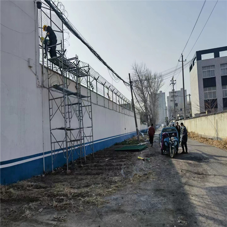 全防護(hù)設(shè)施,由焊接鋼網(wǎng)加蛇腹形刀刺網(wǎng)組合而成。監(jiān)獄防攀爬護(hù)欄網(wǎng)具有結(jié)構(gòu)新穎、堅(jiān)固緊密、網(wǎng)面平整、 網(wǎng)孔均勻、鋒銳利、防攀爬、抗腐蝕性強(qiáng)等特點(diǎn)。建設(shè)于監(jiān)獄的內(nèi)外墻地面及高墻之上, 網(wǎng)墻內(nèi)側(cè)或頂部加裝蛇腹形刀刺網(wǎng),形成-道高不可攀、難以逾越的隔離障礙。配合高壓打擊電網(wǎng)、各種監(jiān)控報(bào)警設(shè)備確保監(jiān)獄安全萬無一失。