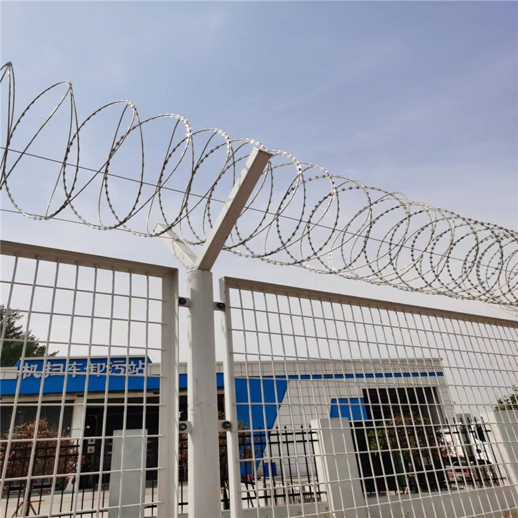 監獄護欄網又稱作“Y型安全防御護網”,是由V型支架立柱,加強型焊接片網,安全防盜連接件和熱鍍鋅刀片刺籠組成強度和安全防御性級別很高?,F被廣泛應用在監獄,軍事基地等高安全場所。注:如果在監獄護欄網頂部加裝刀片刺絲、刀片刺繩后又很好的增強了安全防護性能。采用電鍍、熱鍍、噴塑、浸塑等防腐形式,具有很好的抗老化、抗曬、耐候等特點。其產品造型美觀、花色多樣,既起到圍欄作用,又起到美化作用。由于具有安全性高、防攀爬能力好,網片連接方式采用特制SBS緊扣件,有效防止人為的破壞性拆卸,橫向四道折彎加強筋,使網面強度顯著增加。
