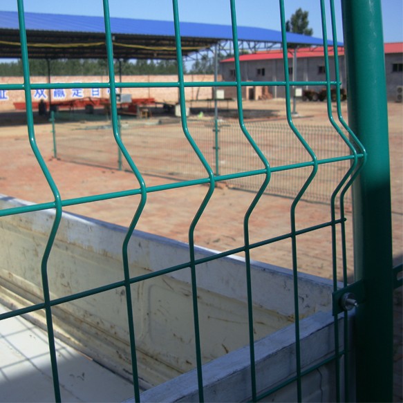 雙邊絲護欄網的常用規格為:高度為1800mm,寬度3000mm,立柱采用φ48mm的浸塑鋼管,絲徑在φ4mm左右,網孔在80*160mm,顏色多為綠色,網片和立柱靠螺絲和各類特殊的塑料或鐵質的卡子連接(所有螺絲均為自動防盜),連接方便簡單快捷。