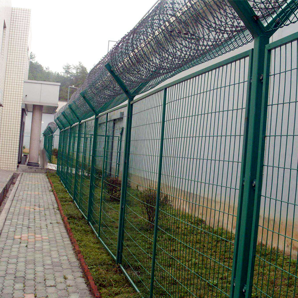 監(jiān)獄圍欄網(wǎng)造型美觀、花色多樣,既起到圍欄作用,又起到美化作用。由于具有安全性高、防攀爬能力好,網(wǎng)片連接方式采用特制SBS緊扣件,有效防止人為的破壞性拆卸,橫向四道折彎加強筋,使網(wǎng)面強度顯著增加,是目前國內(nèi)外最受歡迎的隔離網(wǎng)之一.