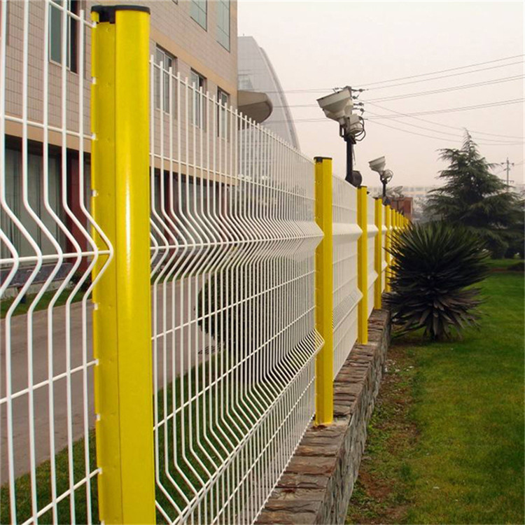 合適的折彎,造就了此種產品獨有的美觀效果,而且表面采用多種 顏色的浸塑處理,如黃色,綠色,紅色,立柱與網片不同顏色的搭配更是令人賞心悅目,同時此種產品多采用帶底盤立柱,安裝只需打好膨脹螺栓,非常的快捷。