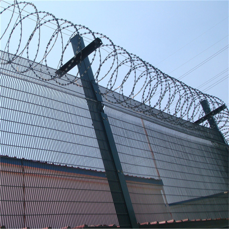 軍事禁區隔離網廠家介紹:由焊接鋼網加蛇腹形刀刺網組合而成。產品具有結構新穎、堅固緊密、網面平整、網孔均勻、刀鋒銳利、防攀爬、防腐蝕性強等特點。建設于監獄的內外墻地面及高墻之上,網墻內側或頂部加裝蛇腹形刀刺網,形成一道高不可攀、難以逾越的隔離障礙。配合高壓打擊電網、各種監控報警設備確保監獄安全萬無一失。